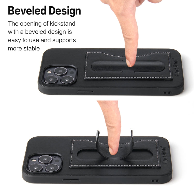 For iPhone 15 Fierre Shann Holder Back Cover PU Phone Case(Black)