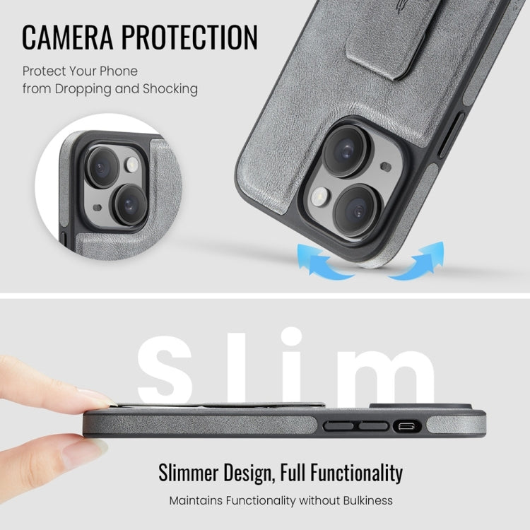 For iPhone 15 Fierre Shann Oil Wax Cow Leather Holder Back Phone Case(Grey)