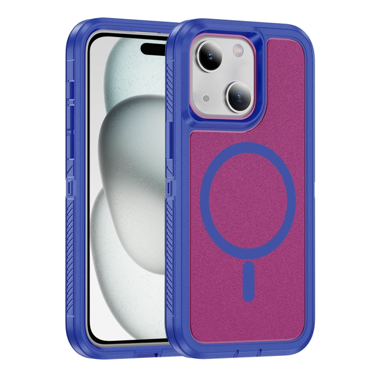 For iPhone 15 Guard Magsafe Magnetic Ring Matte Phone Case(Blue+Rose Red)
