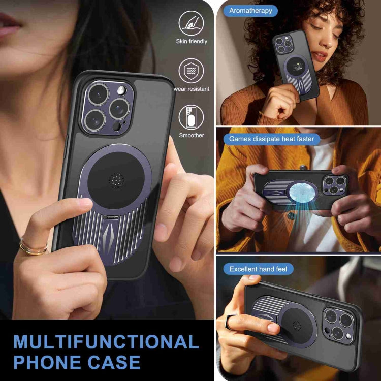 For iPhone 15 Heat Dissipation Aromatherapy MagSafe Holder Phone Case(Purple)