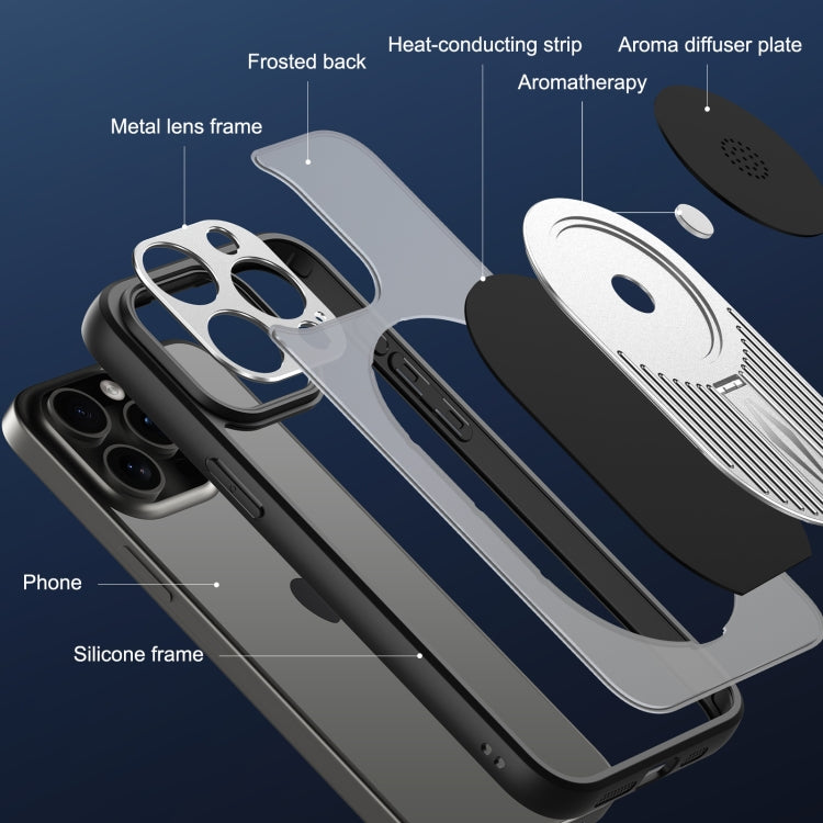 For iPhone 15 Heat Dissipation Aromatherapy MagSafe Holder Phone Case(Silver)