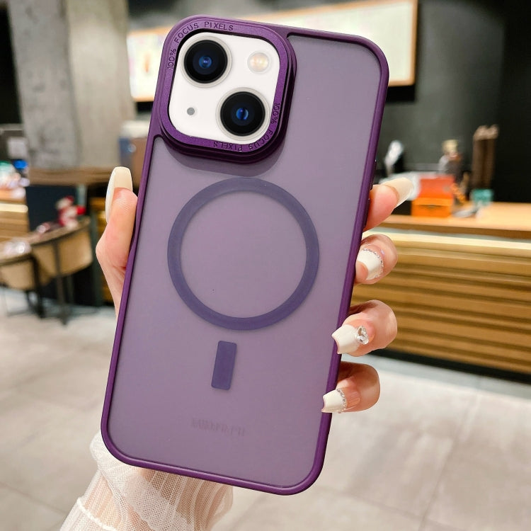 For iPhone 15 Imitation Metal Frosted Skin Feel Acrylic MagSafe Phone Case(Deep Purple)