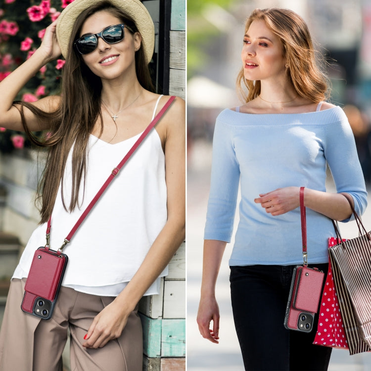 For iPhone 15 JEEHOOD C22 Series Zipper Wallet Leather Phone Case with Dual Lanyard(Red)