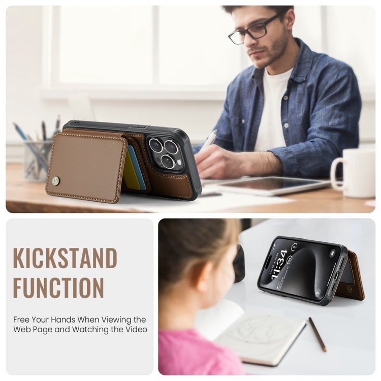 For iPhone 15 JEEHOOD J05 Business Magnetic Style RFID Leather Phone Case(Brown)
