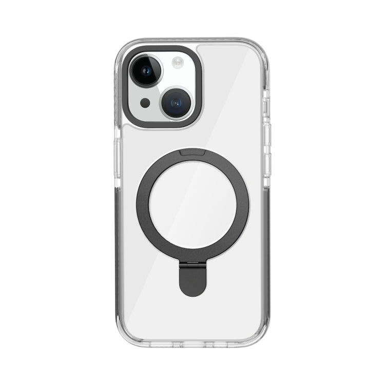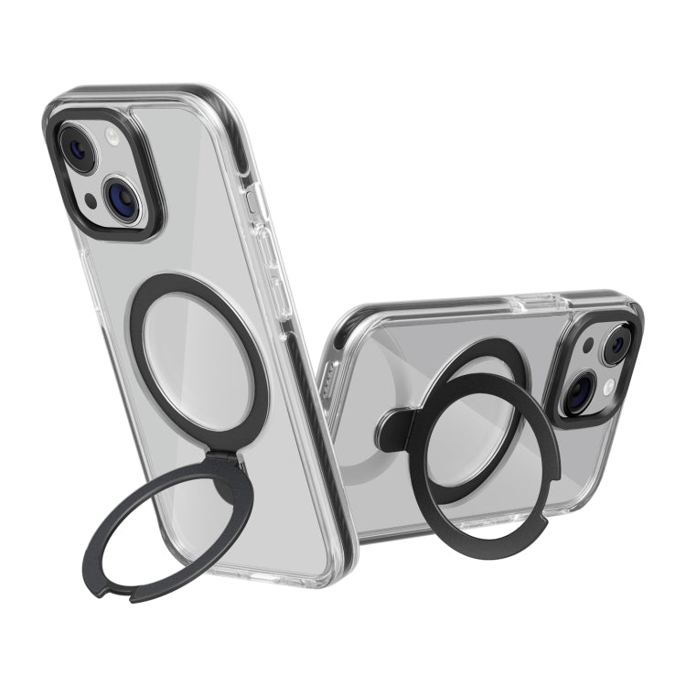 For iPhone 15 Kingsteel Wolf MagSafe Holder Transparent Phone Case(Black)