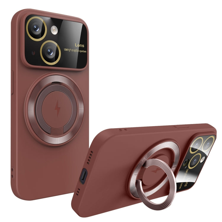 For iPhone 15 Large Window MagSafe Magnetic Holder Phone Case(Claret Red)