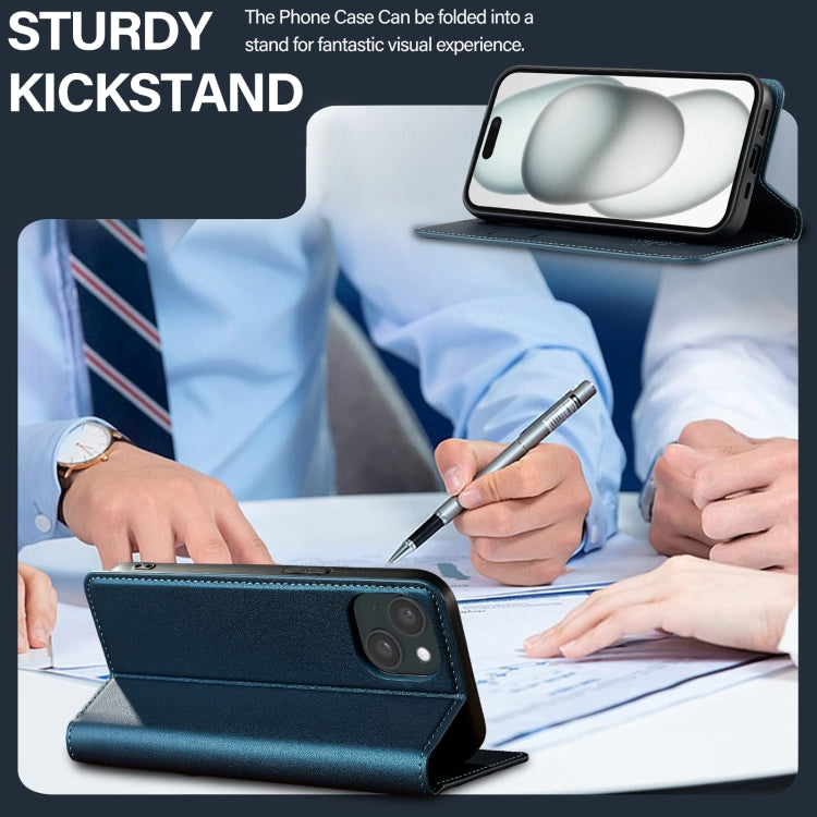 For iPhone 15 LC.IMEEKE L1 Series Frosted Fine Texture PU Phone Case(Blue)