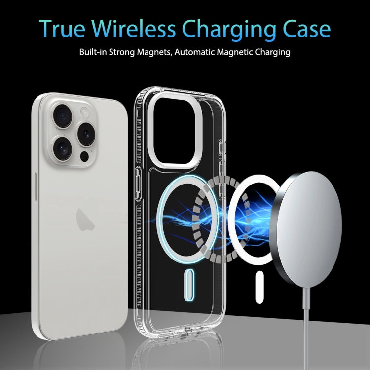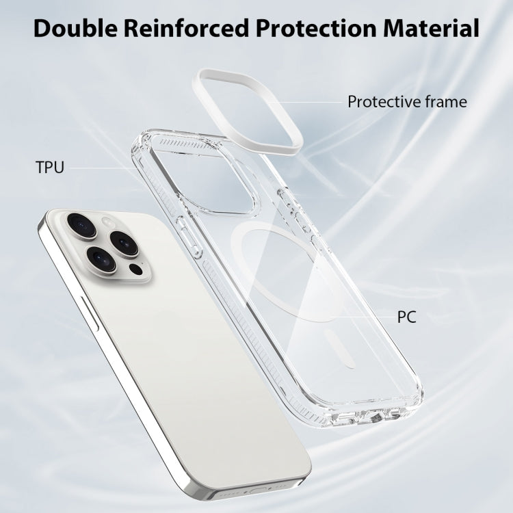 For iPhone 15 Lens Protection Frame MagSafe Phone Case(White)