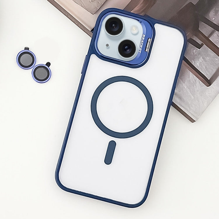 For iPhone 15 MagSafe Acrylic Hybrid TPU Holder Phone Case with Lens film(Deep Blue)