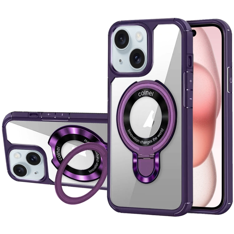For iPhone 15 MagSafe Acrylic Hybrid TPU Phone Case with Holder(Purple)