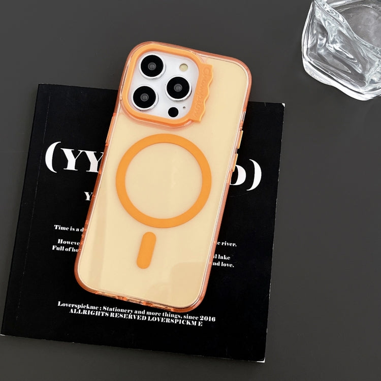For iPhone 15 MagSafe Colorful Wavy Circle PC Hybrid TPU Phone Case(Orange)