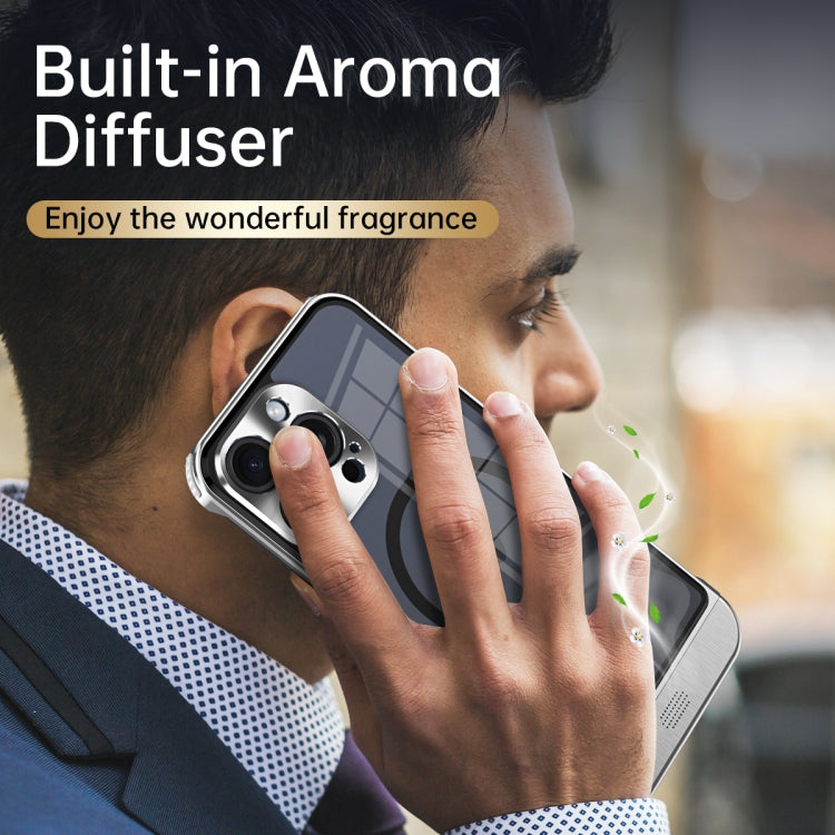 For iPhone 15 Metal Scissor Design Aroma MagSafe Phone Case(Silver)