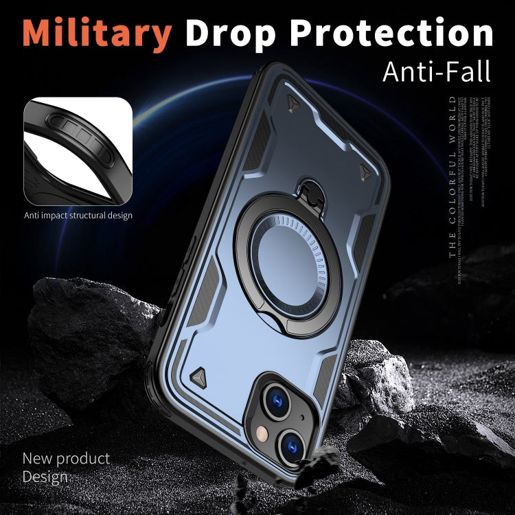 For iPhone 15 PC Hybrid TPU Armor MagSafe Ring Holder Phone Case(Blue)