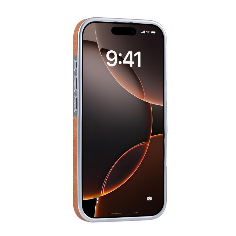 For iPhone 15 Plated Leather Grain Rotation MagSafe Holder Phone Case(Brown)