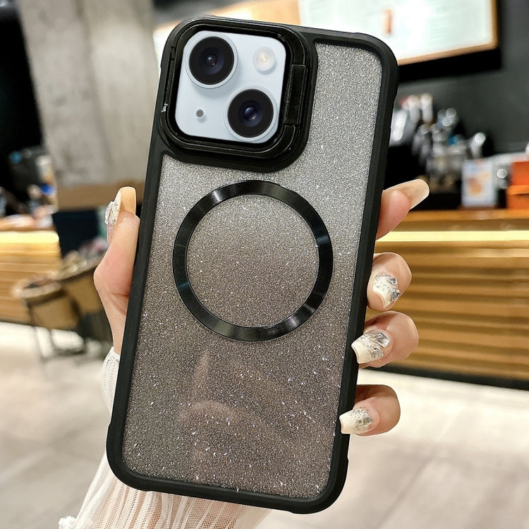 For iPhone 15 Plus CD-grain Gradient Glitter Magsafe Acrylic Hybrid TPU Phone Case(Black)