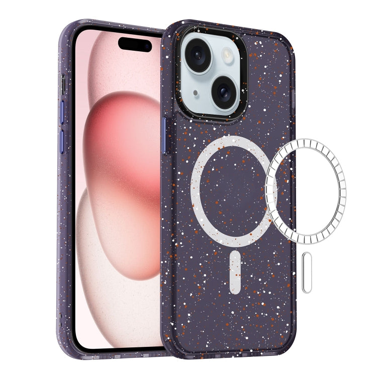 For iPhone 15 Plus Colorful Ink-splash Magsafe PC Hybrid TPU Phone Case(Purple)
