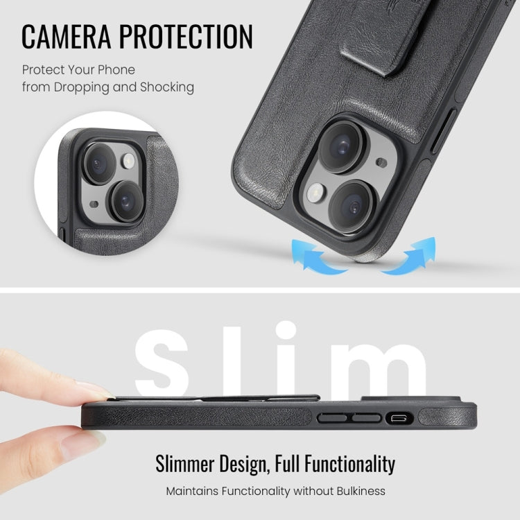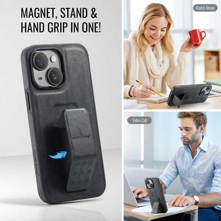 For iPhone 15 Plus Fierre Shann Oil Wax Cow Leather Holder Back Phone Case(Black)