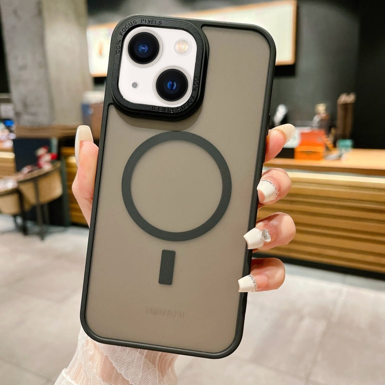 For iPhone 15 Plus Imitation Metal Frosted Skin Feel Acrylic MagSafe Phone Case(Black)
