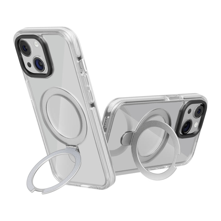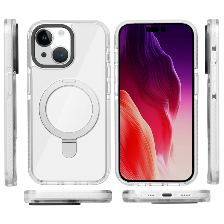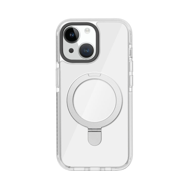 For iPhone 15 Plus Kingsteel Wolf MagSafe Holder Transparent Phone Case(White)