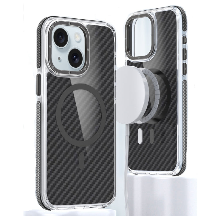 For iPhone 15 Plus Magsafe Dual-Color Carbon Fiber Phone Case(Black)