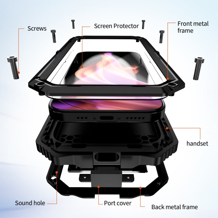 For iPhone 15 Plus R-JUST Life Waterproof Dustproof Shockproof Holder Phone Case(Black)
