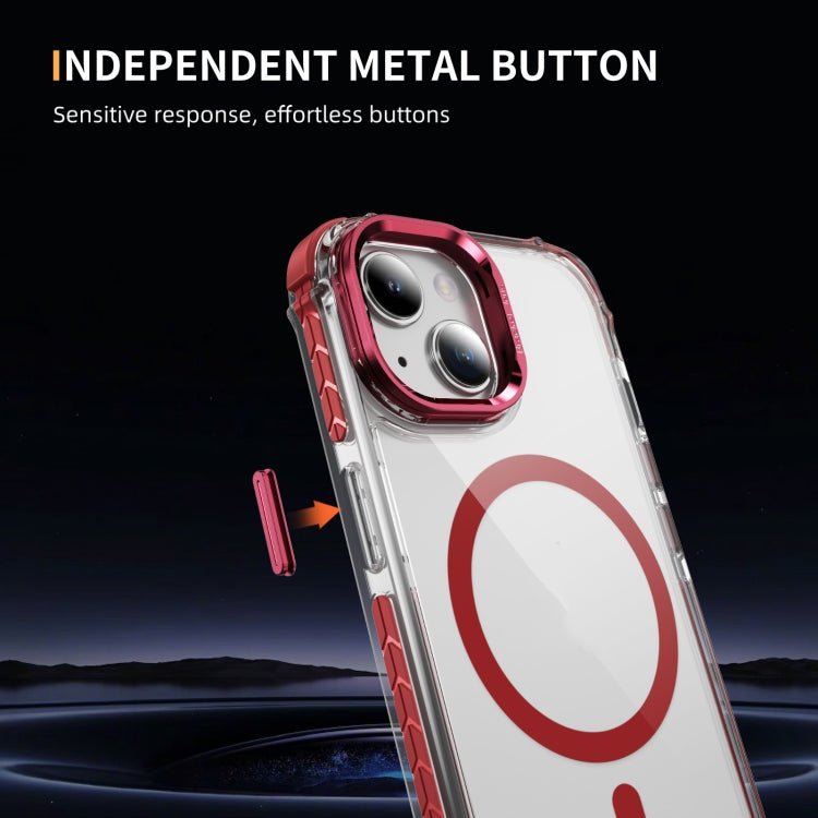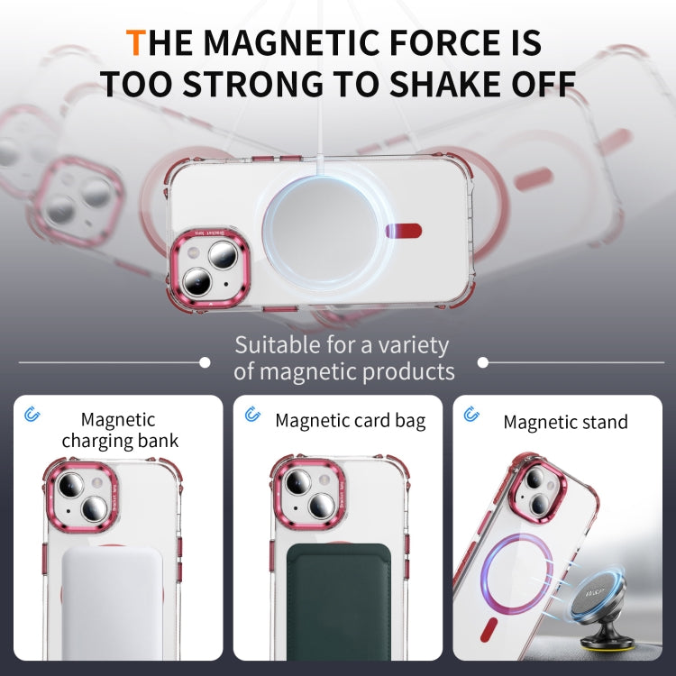 For iPhone 15 Plus Rainbow Series Transparent MagSafe Lens Holder Phone Case(Red)