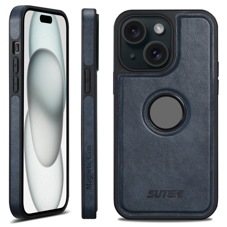 For iPhone 15 Plus Suteni G1 Magsafe Leather Back Phone Case(Blue)