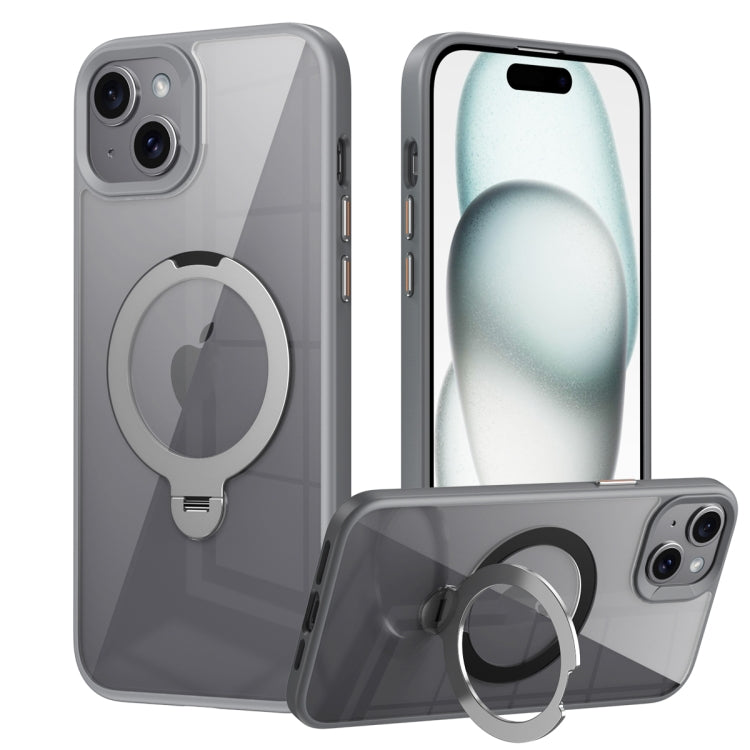 For iPhone 15 Plus Transparent MagSafe Magnetic Rotating Ring Holder Phone Case(Grey)
