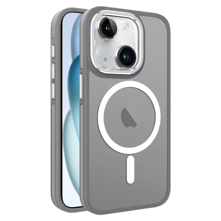 For iPhone 15 Plus Two-color Frosted MagSafe Magnetic Phone Case(Grey)