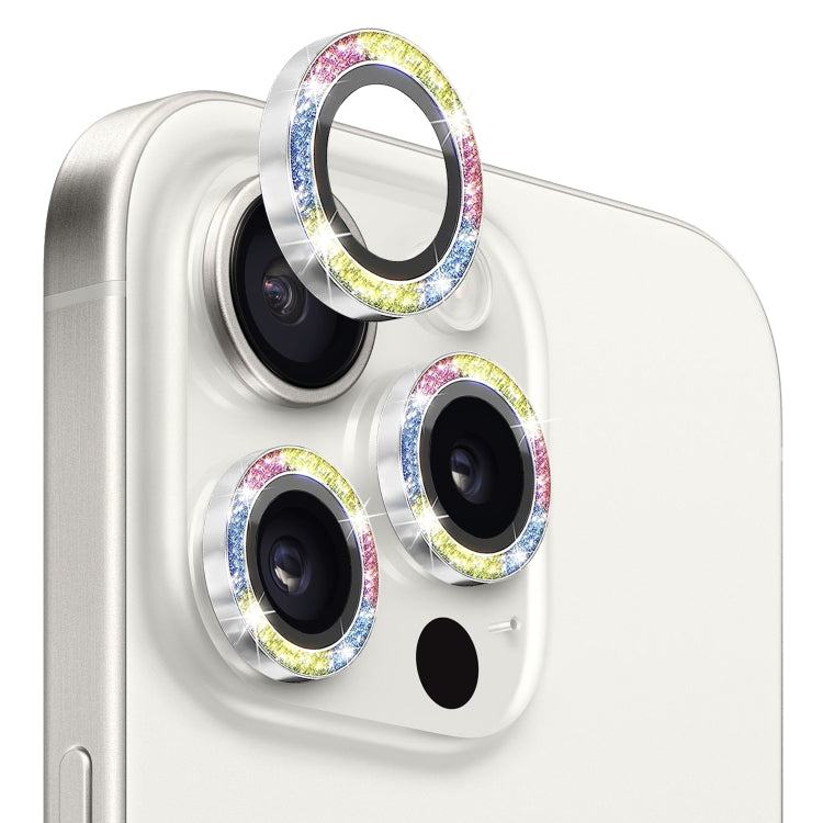 For iPhone 15 Pro / 15 Pro Max NORTHJO Camera Lens Protector Tempered Glass Bling Glitter Metal Ring Film(Colorful)