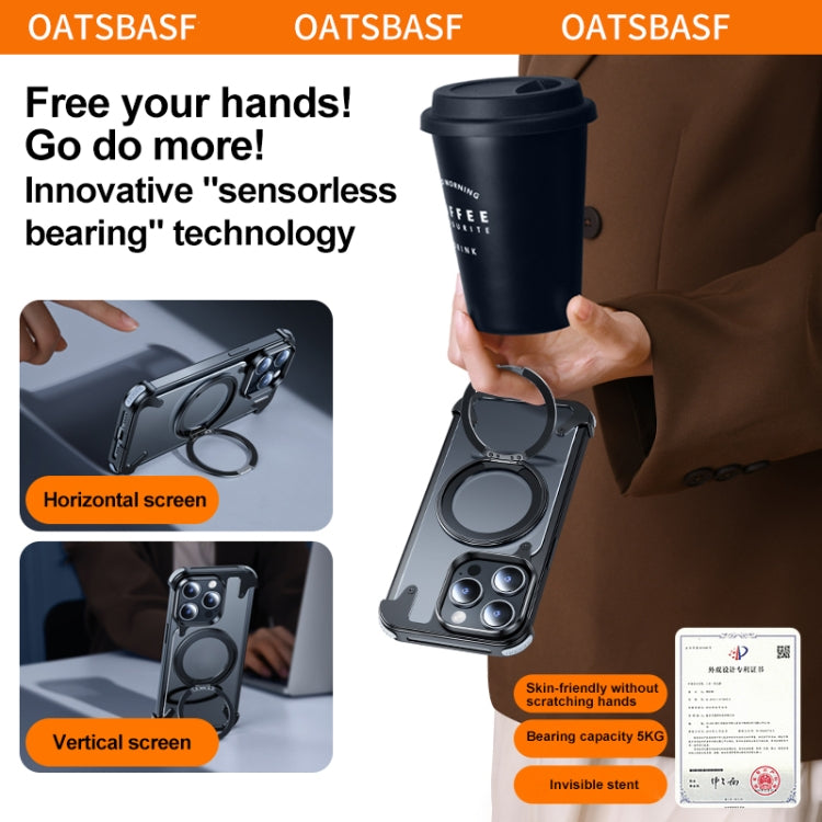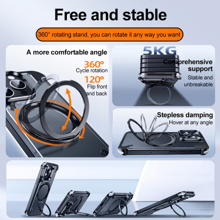For iPhone 15 Pro 360 Degree Rotation MagSafe Stand Metal Phone Case(Frosted Silver)
