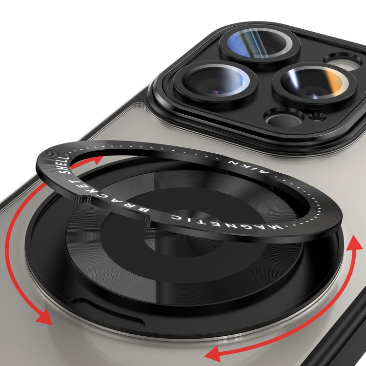 For iPhone 15 Pro 360 Holder Magsafe Acrylic Hybrid TPU Phone Case(Black)
