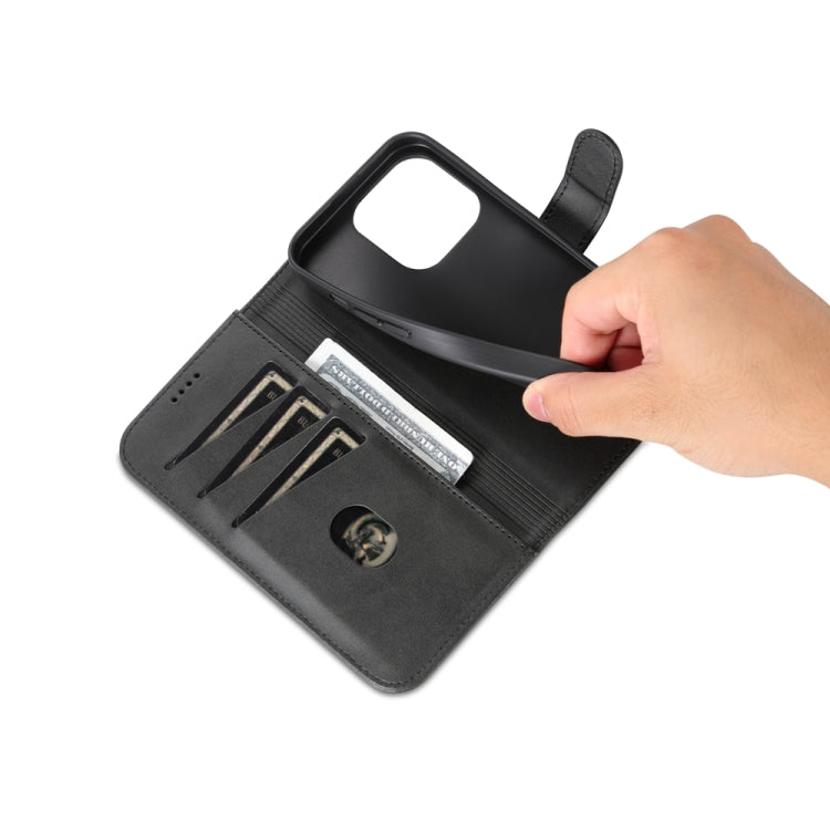 For iPhone 15 Pro AZNS Skin Feel Calf Texture Flip Leather Phone Case(Black)