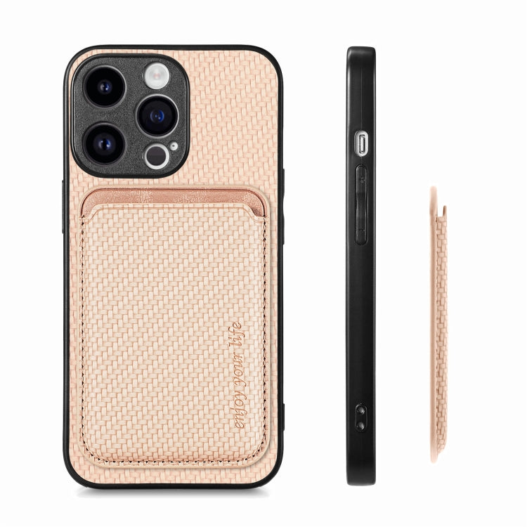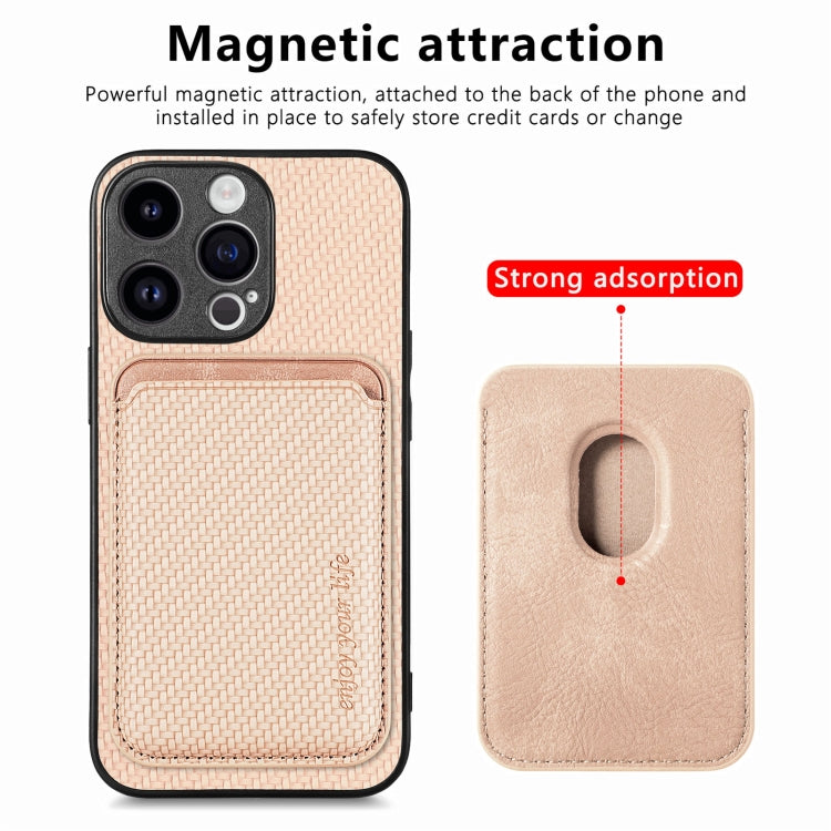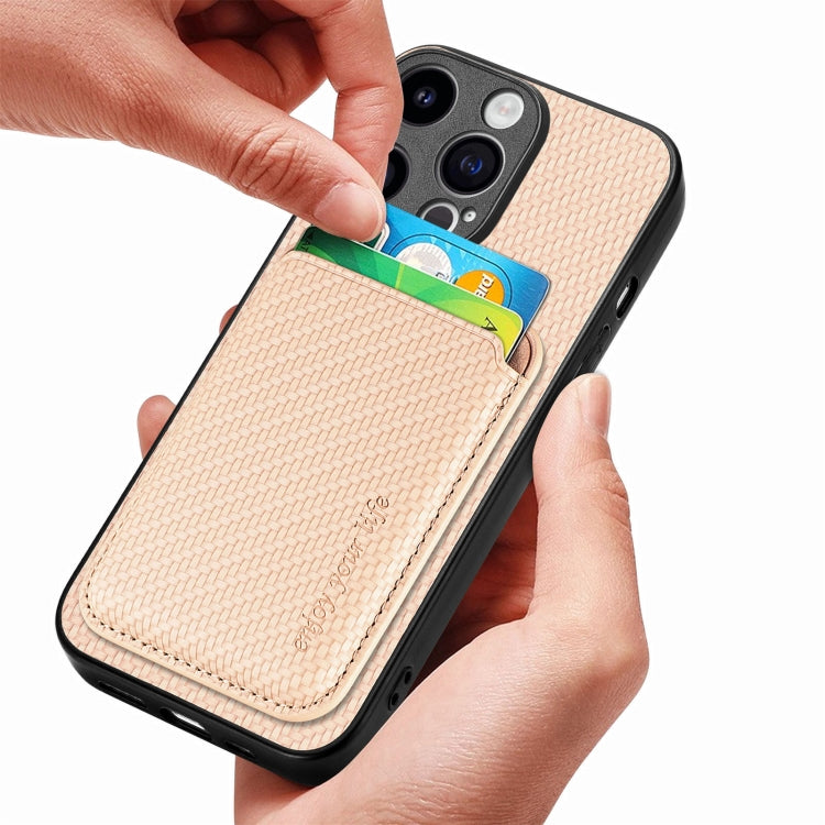 For iPhone 15 Pro Carbon Fiber Leather Card Magsafe Phone Case(Khaki)