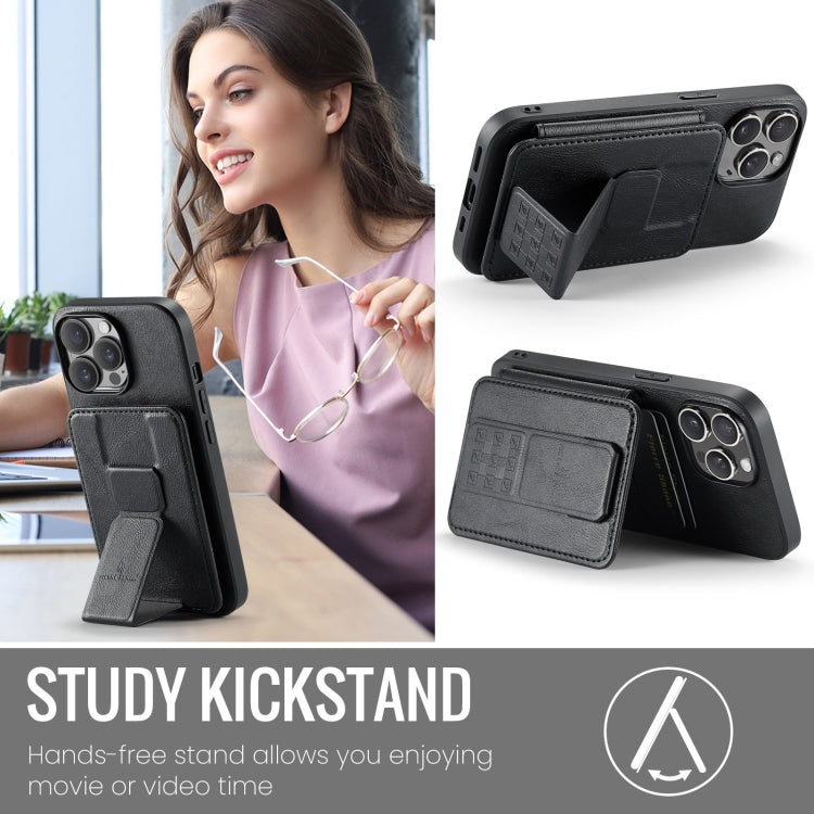 For iPhone 15 Pro Fierre Shann Oil Wax Cow Leather Card Holder Back Phone Case(Black)