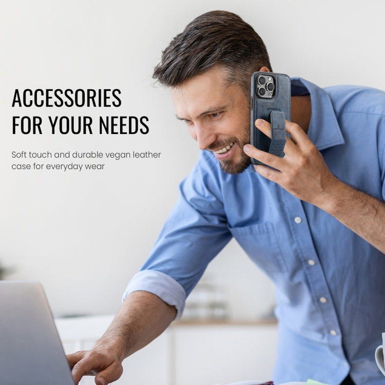 For iPhone 15 Pro Fierre Shann Oil Wax Cow Leather Holder Back Phone Case(Blue)