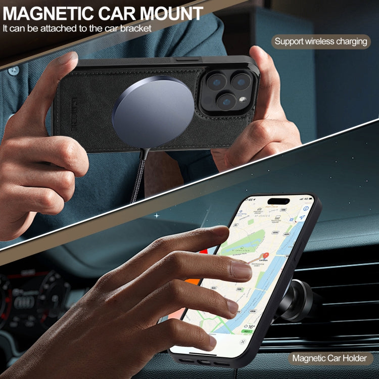 For iPhone 15 Pro LC.IMEEKE L5 Series Detachable RFID Card Bag Magsafe Phone Case(Black)