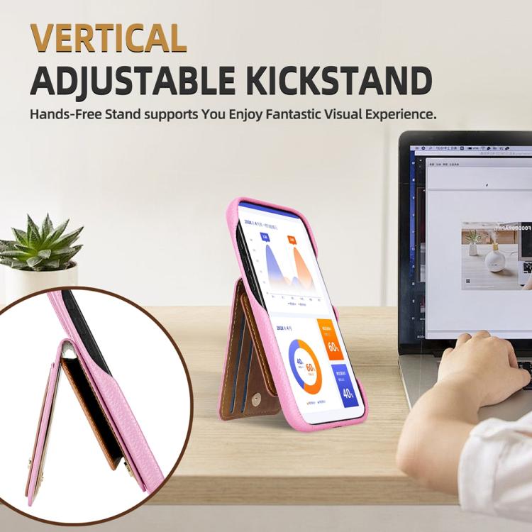 For iPhone 15 Pro Litchi Texture Leather Ring Card Bag Holder Phone Case(Pink)