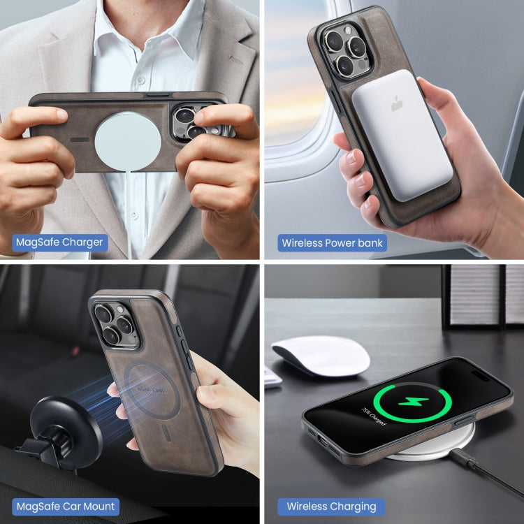 For iPhone 15 Pro Max MAGKING K2 Series MagSafe RFID Card Bag Detachable Phone Case(Coffee)