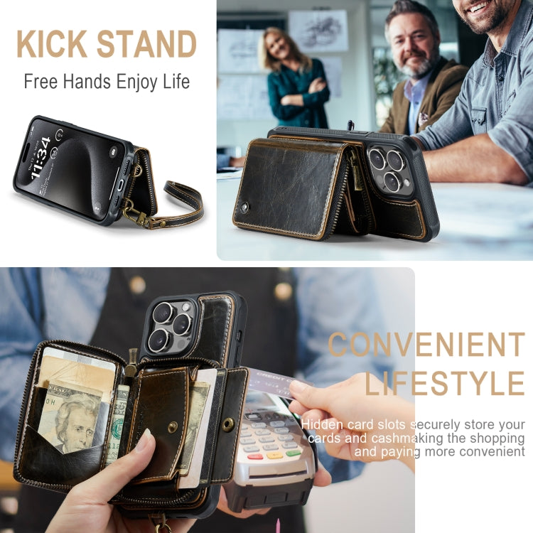 For iPhone 15 Pro Max JEEHOOD C22 Series Zipper Wallet Leather Phone Case with Dual Lanyard(Coffee)