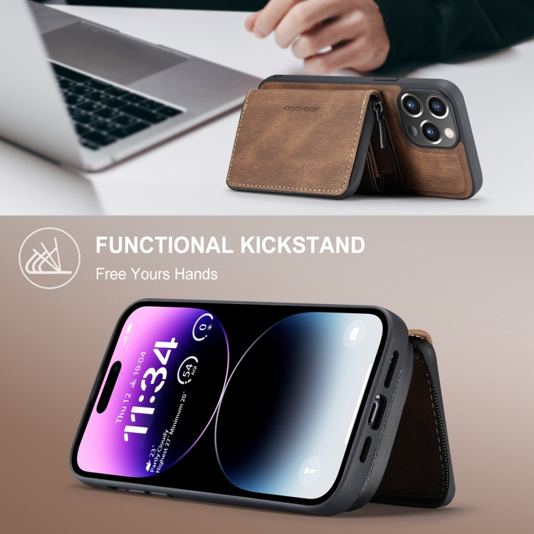 For iPhone 15 Pro Max JEEHOOD Magnetic Zipper Wallet Leather Phone Case(Brown)