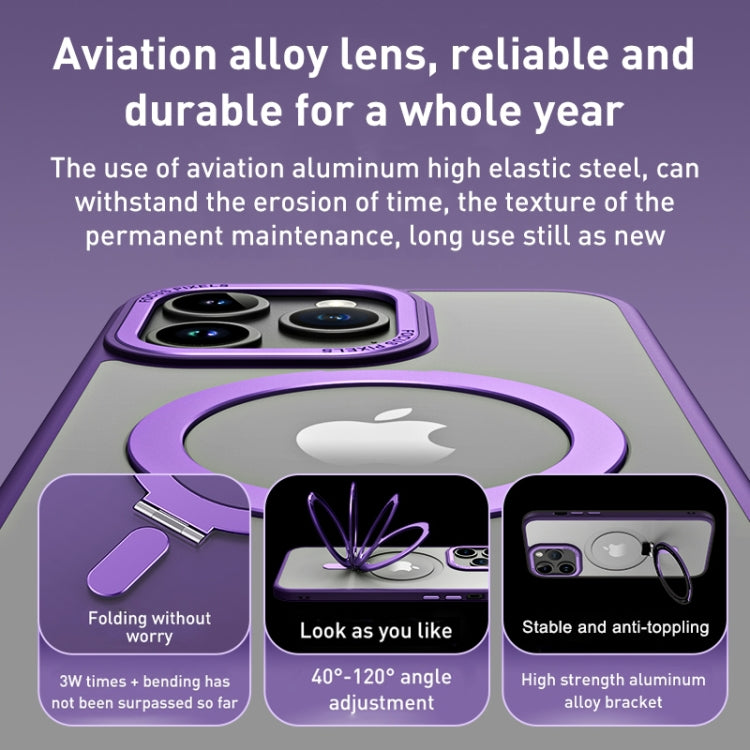 For iPhone 15 Pro Max Skin Feel MagSafe Shockproof Phone Case with Holder(Purple)
