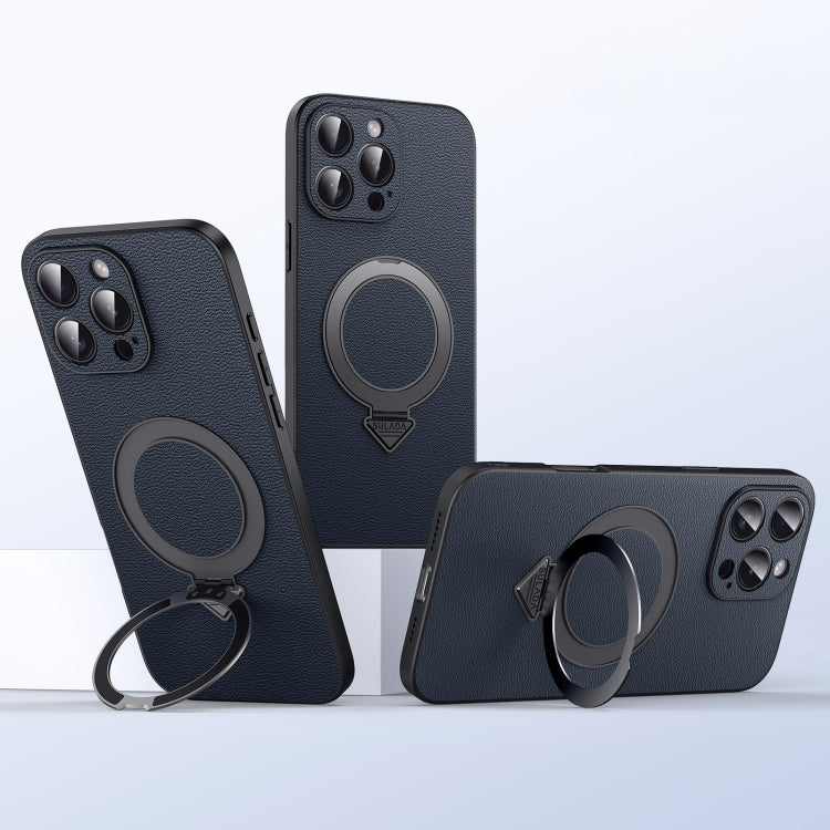 For iPhone 15 Pro Max SULADA Top Grain Leather MagSafe Magnetic Holder Phone Case(Blue)