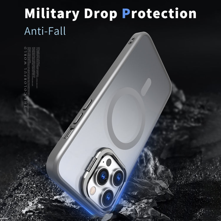 For iPhone 15 Pro Metal Invisible Camera Holder MagSafe Magnetic Phone Case(Grey)