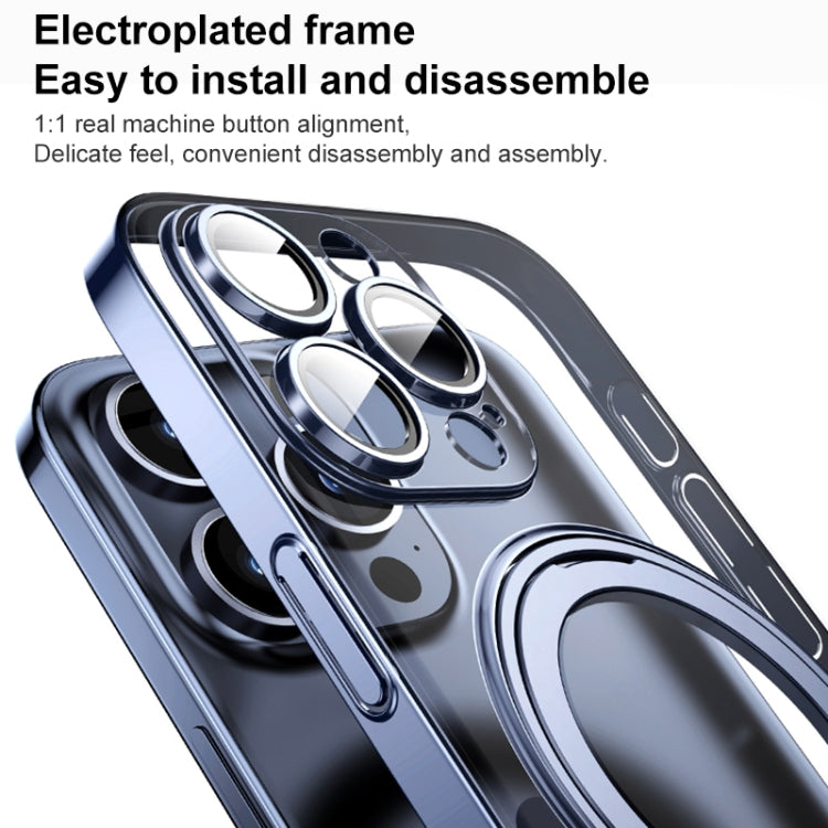 For iPhone 15 Pro Plating PC 360 Ring Holder Magsafe Phone Case(Clear Gold)