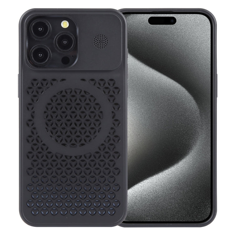 For iPhone 15 Pro Pure Color Honeycomb Aromatherapy MagSafe Phone Case(Black)