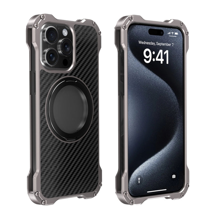 For iPhone 15 Pro R-JUST RJ51-1 Hollow Rotating Holder MagSafe Magnetic Metal Phone Case(Silver Grey)