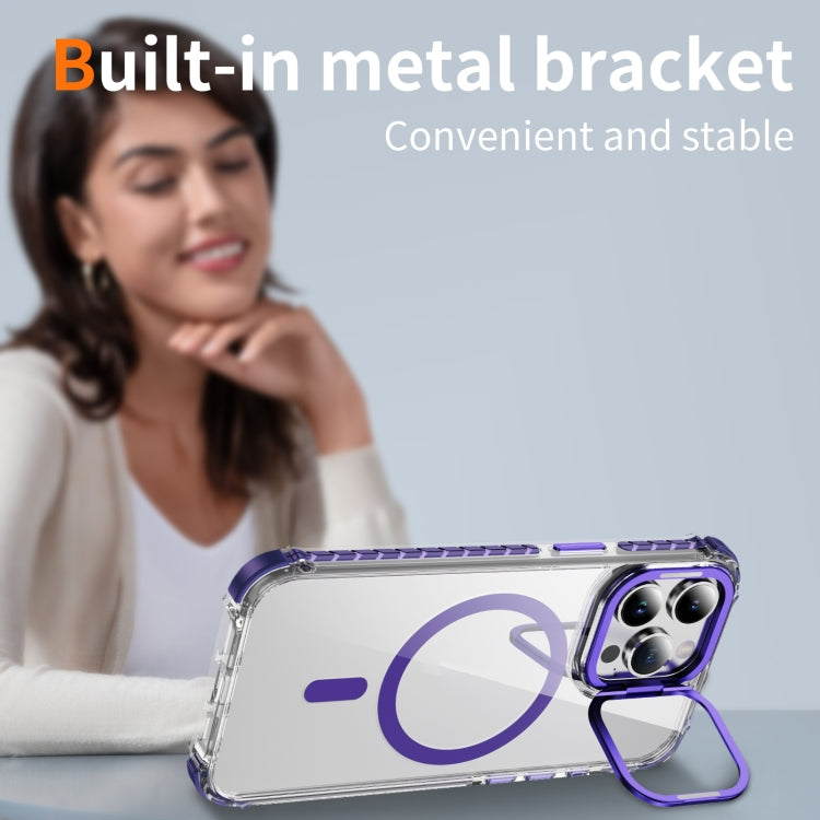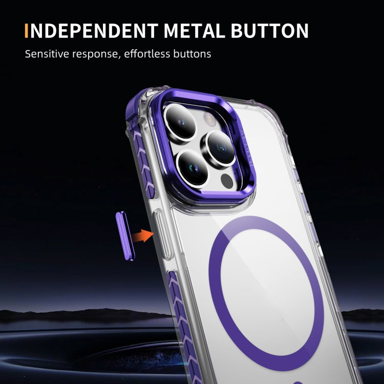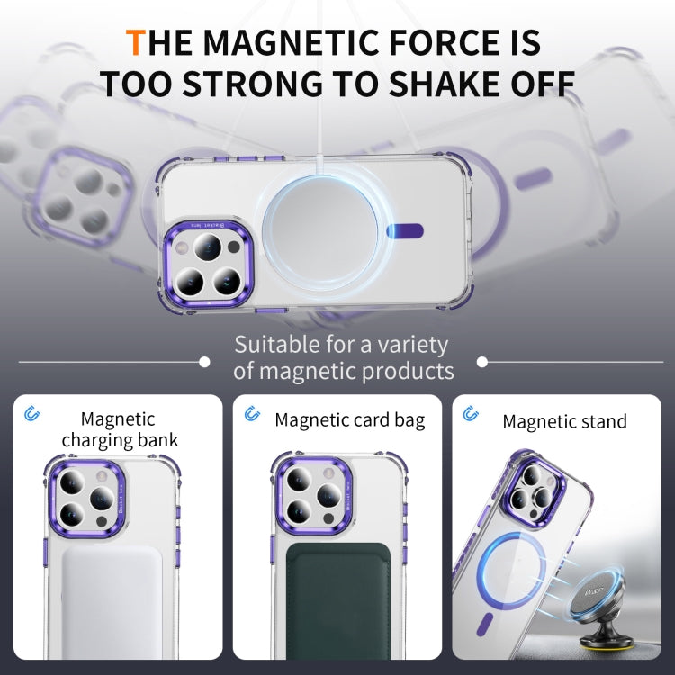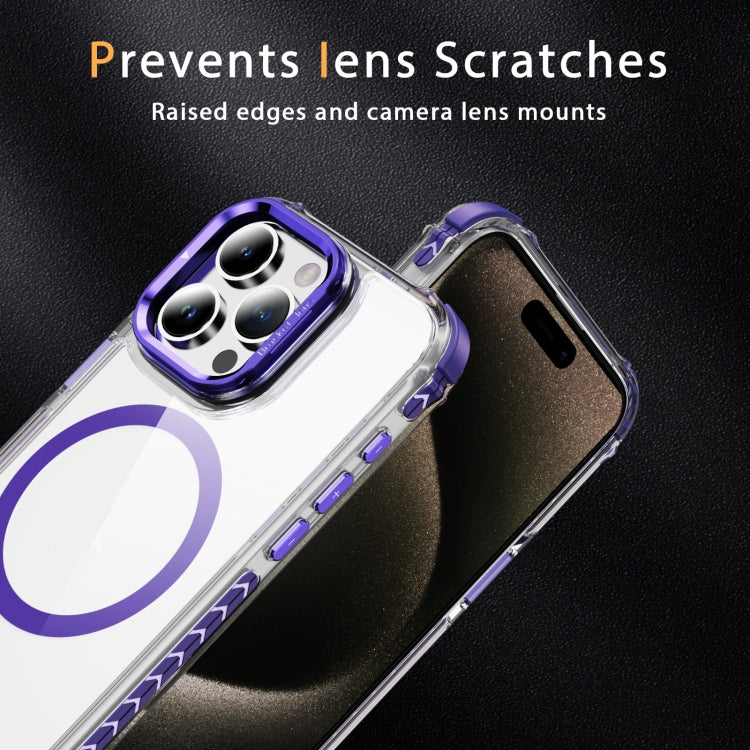 For iPhone 15 Pro Rainbow Series Transparent MagSafe Lens Holder Phone Case(Purple)