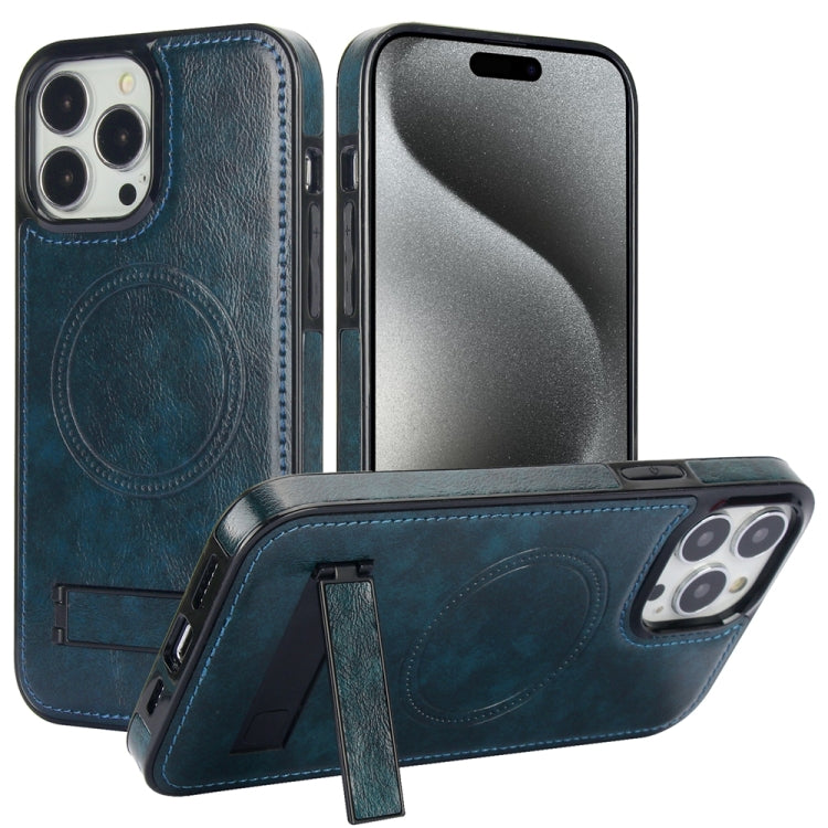 For iPhone 15 Pro Retro Leather Invisible Stand MagSafe Phone Case(Blue)