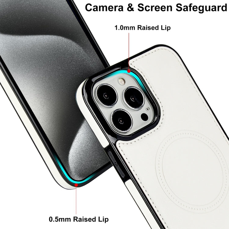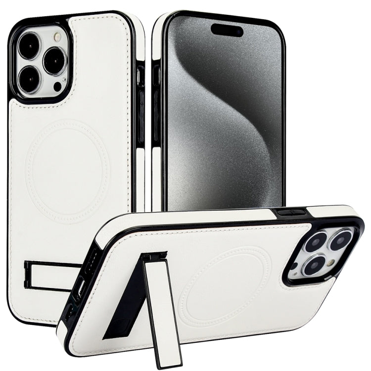 For iPhone 15 Pro Retro Leather Invisible Stand MagSafe Phone Case(White)